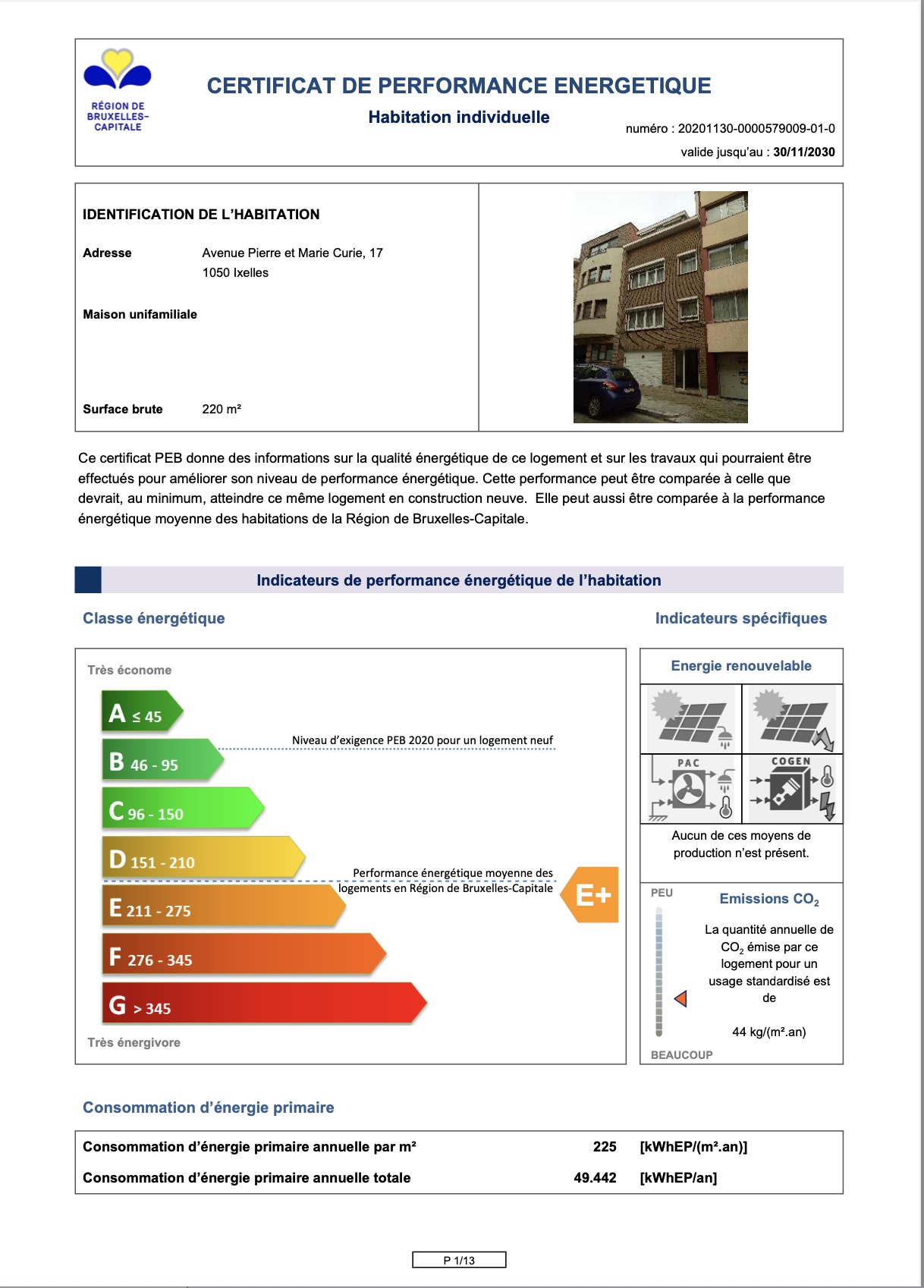 | PEB E-SPEC (kwh/m²/an) | 225 |