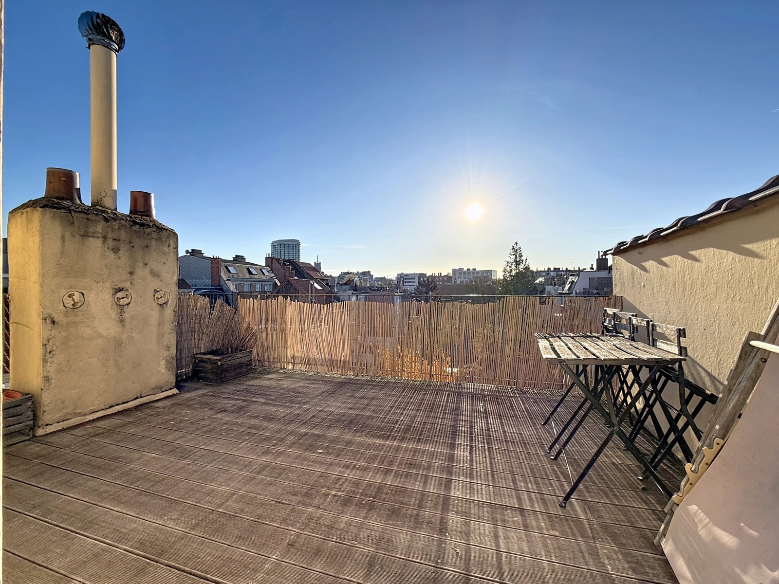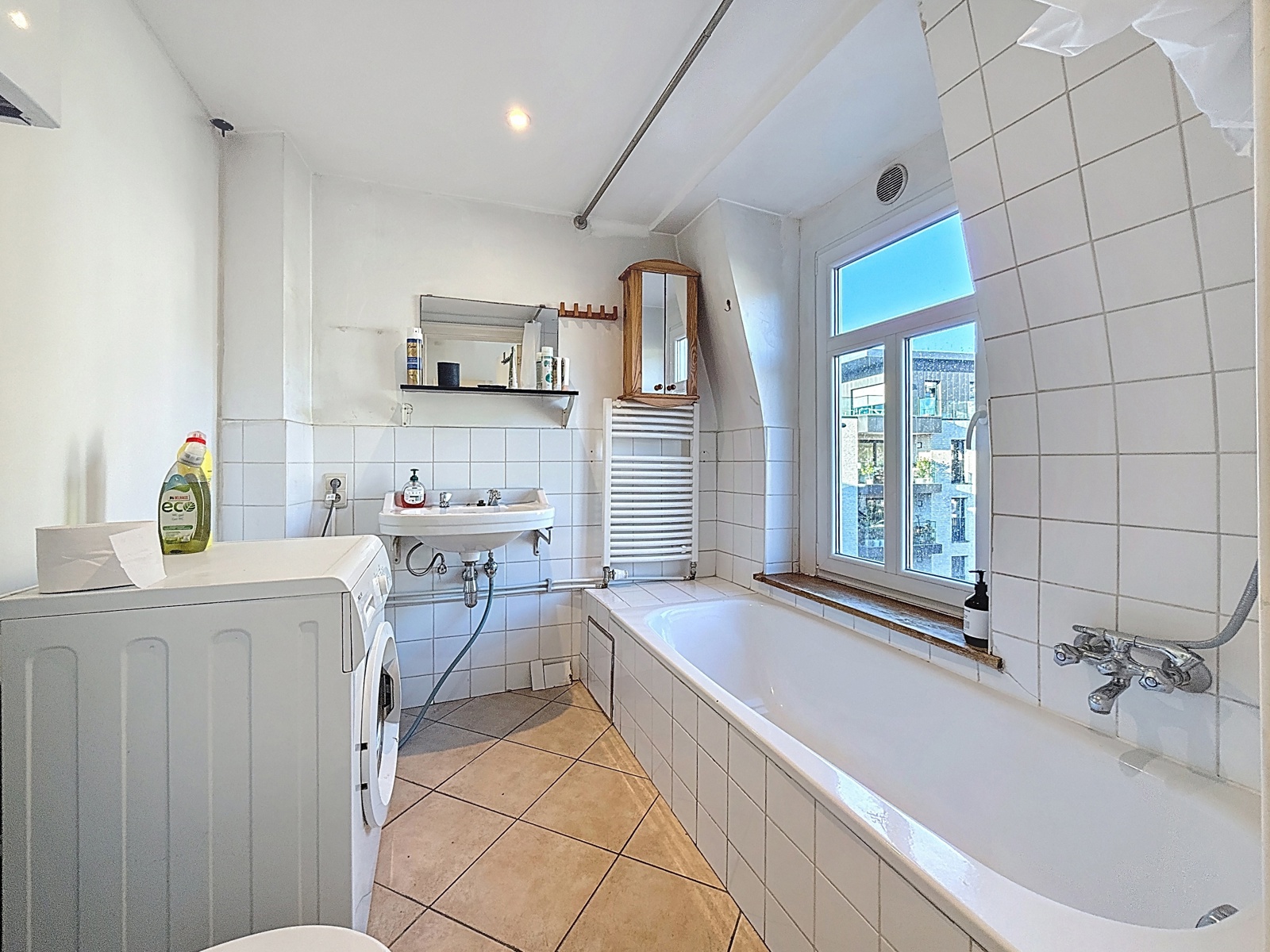 Idéalement situé à 2 pas de la Place Stéphanie, MCIM Invest vous propose cet immeuble de caractère en excellent état général, très simple de gestion, composé d’un superbe duplex en bas avec jardin (vaste séjour lumineux avec cuisine ouverte, bureau, grande chambre ±16m² et salle de bain), de deux appartements 1 chambre d’environ 60m² chacun aux 1er et 2ème étages dont celui du 1er bénéficie d’une terrasse orientée SUD-OUEST, et d’un magnifique studio d’environ 50m² au 3ème étage jouissant d’une splendide terrasse de ±16m² plein SUD-OUEST. PEB : G – F – G. Electricité non conforme mais remise en conformité très simple et peu coûteuse. Une opportunité rare, idéal investisseur. Infos & visites : info@mcim-invest.be – 0473/23.64.90.
